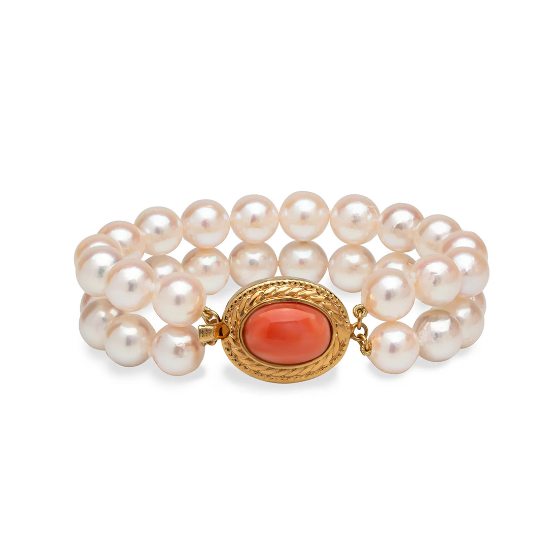 Double-Strand Japanese Akoya Pearl & Coral Bracelet – Featured in Vogue, GQ, and Harper’s Bazaar