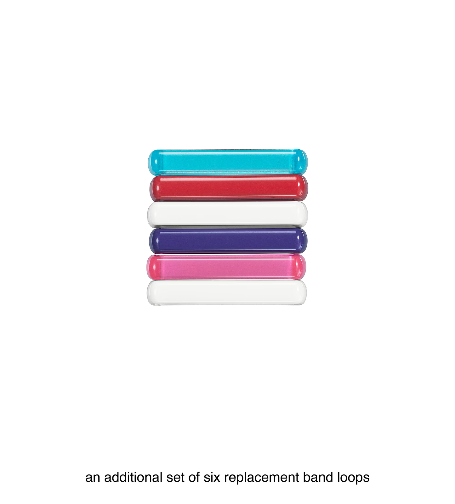 - Nine interchangeable band loops (seven solid colors, two translucent).