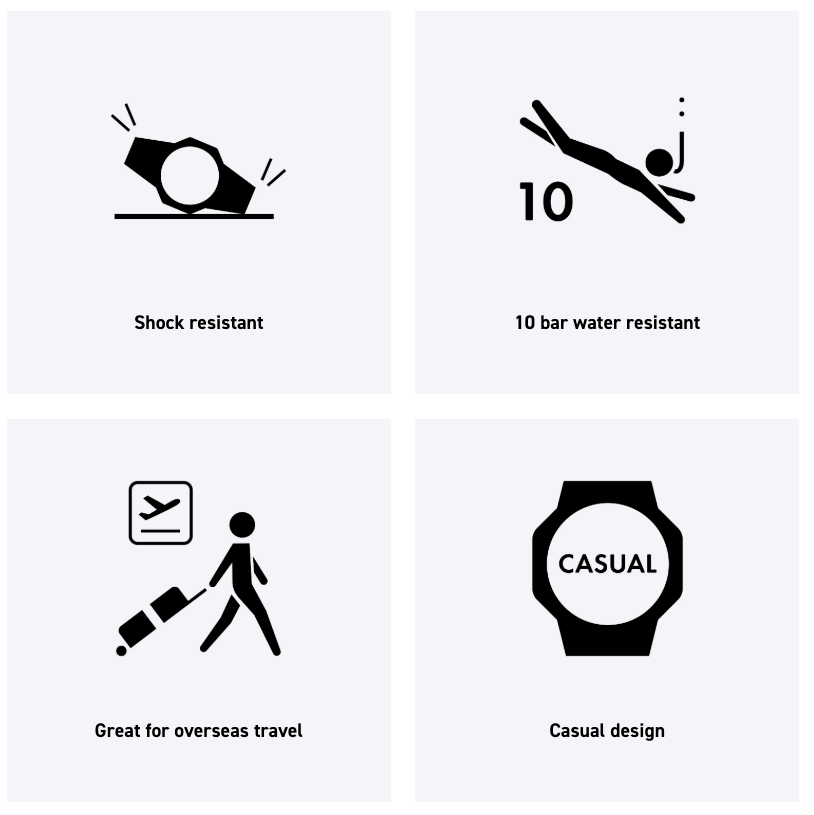 - Shock-resistant & 100-meter water resistance, ensuring durability.