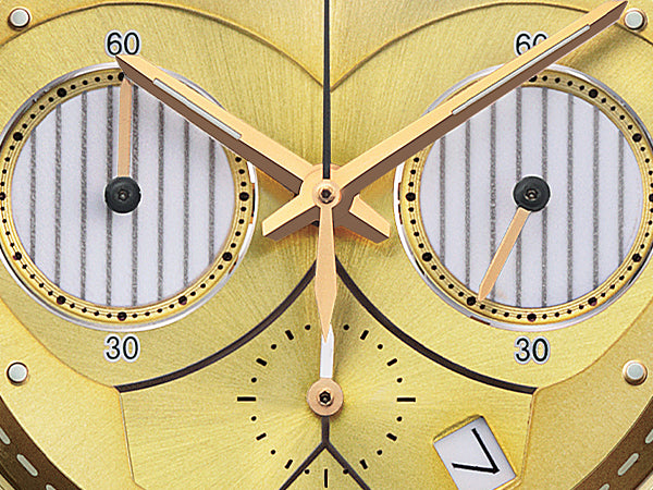 - Design: Inspired by C-3PO™, the gold-tone stainless steel case and brass dial reflect his signature look, complete with glow-in-the-dark "eyes."