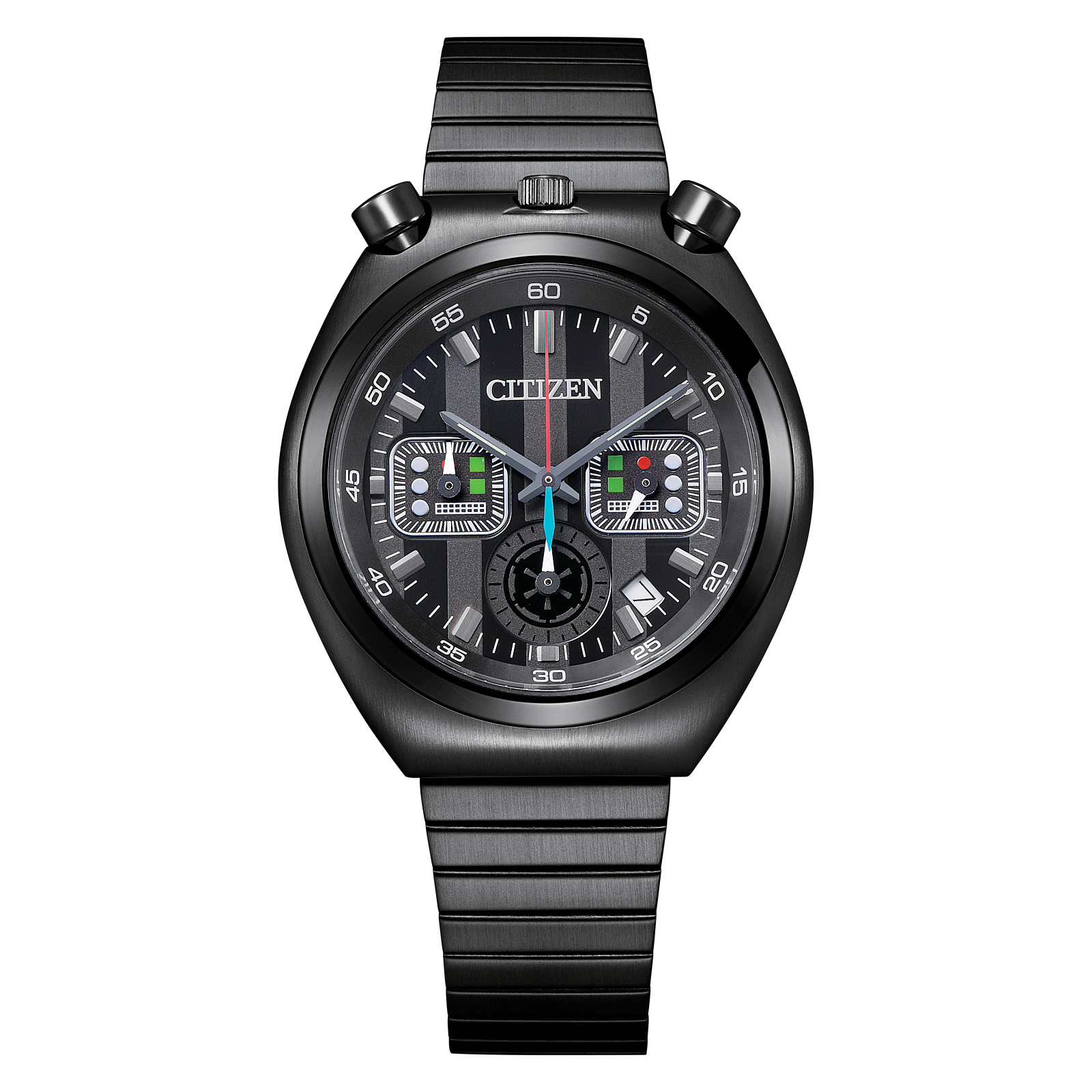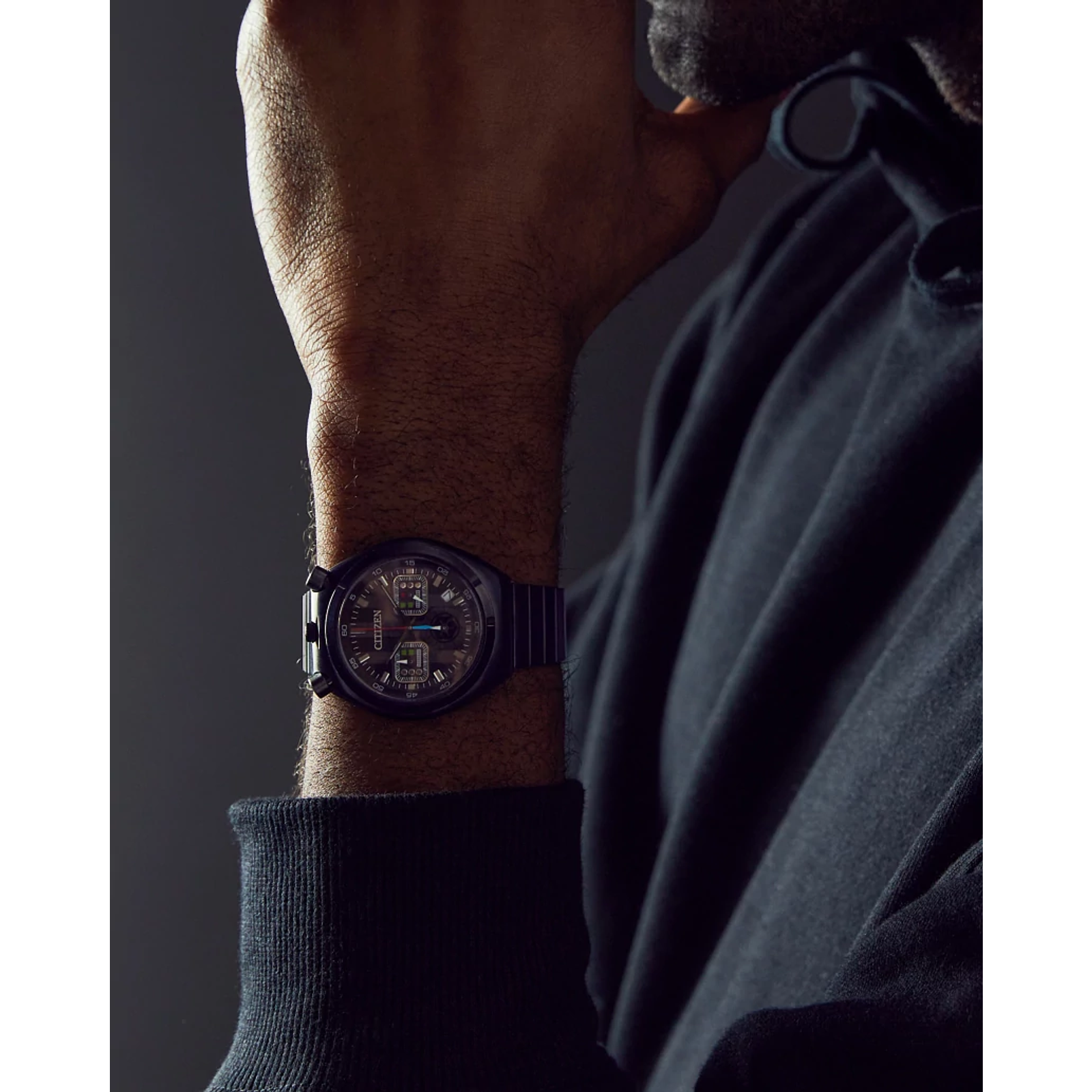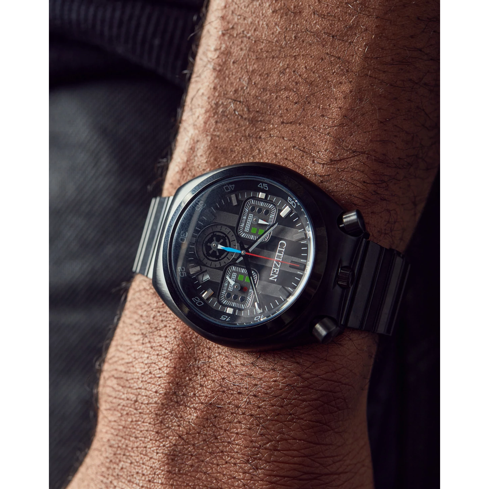 - Accents & Colorway: The chronograph hands are designed to mimic the evolution of Vader’s character, capturing the essence of the Sith Lord.