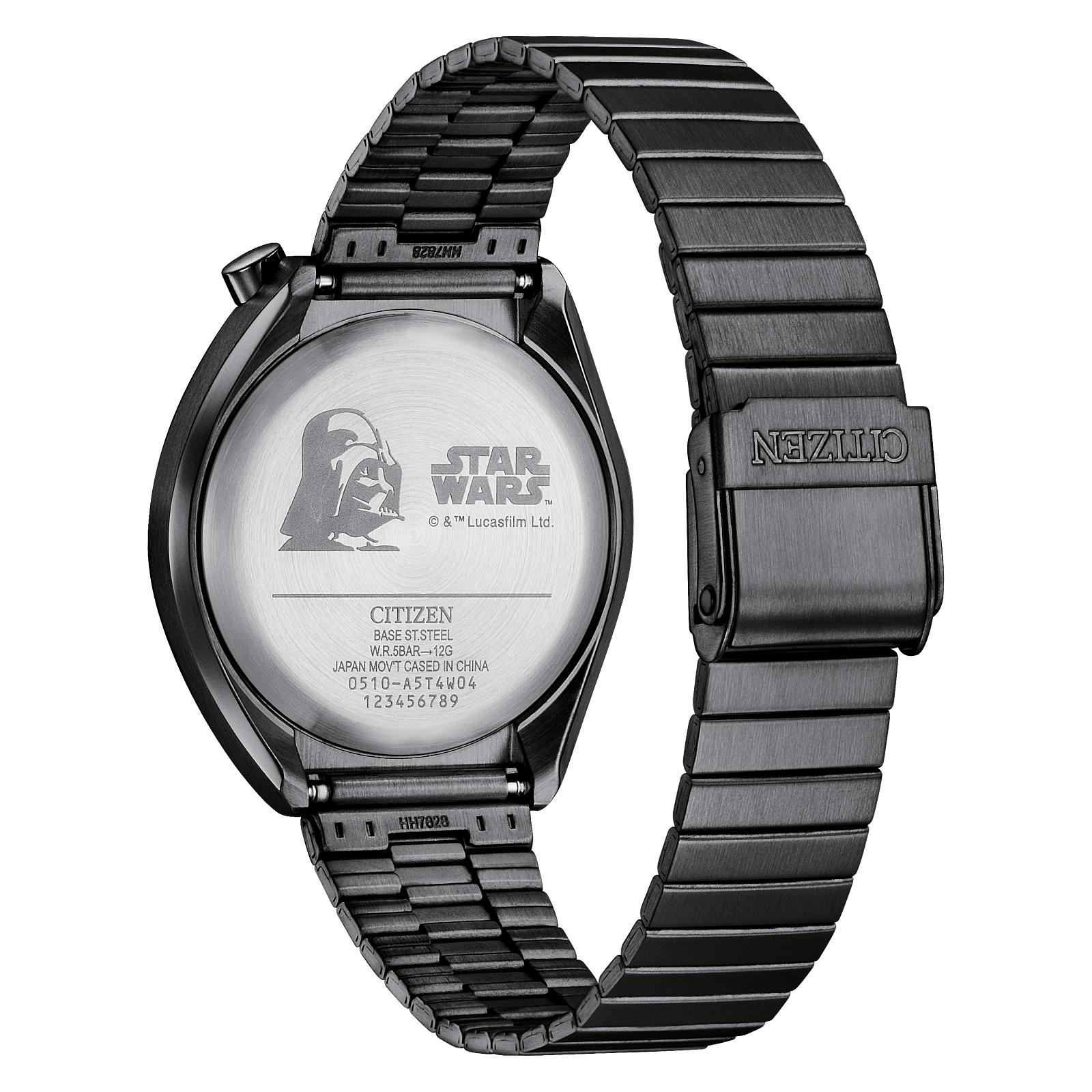 - Graphics & Details: Sub-dials with green and red accents, symbolizing Vader’s transition to the dark side. The case back is etched with an intricate image of Darth Vader™ and the classic Star Wars logo.