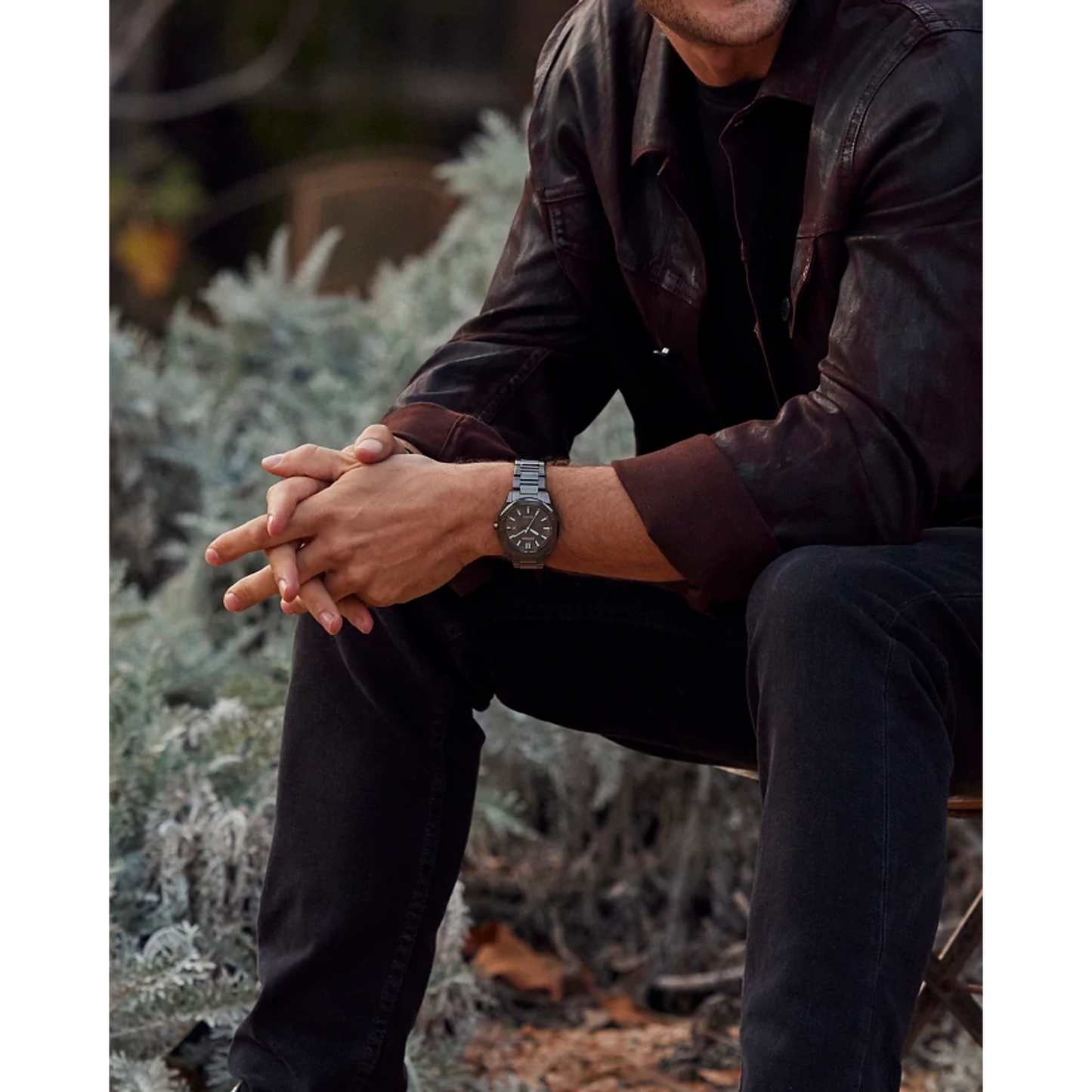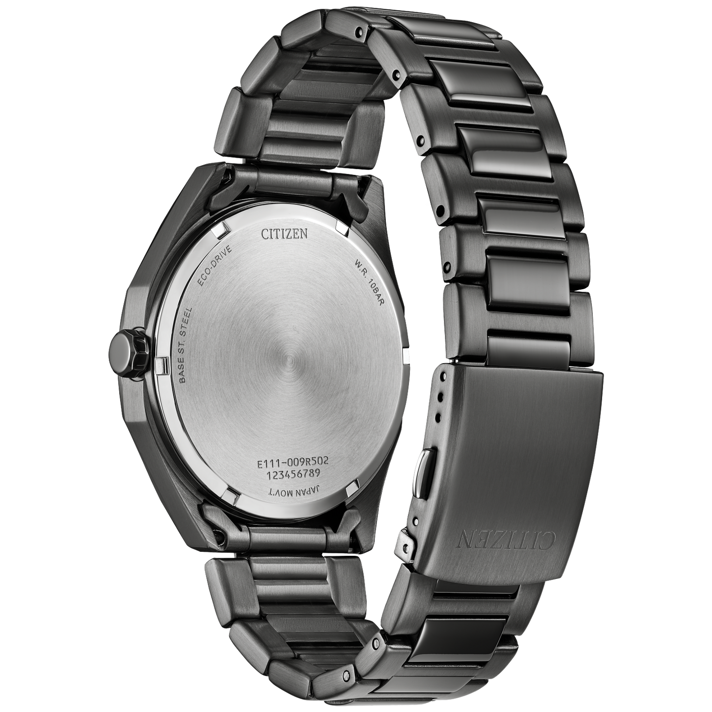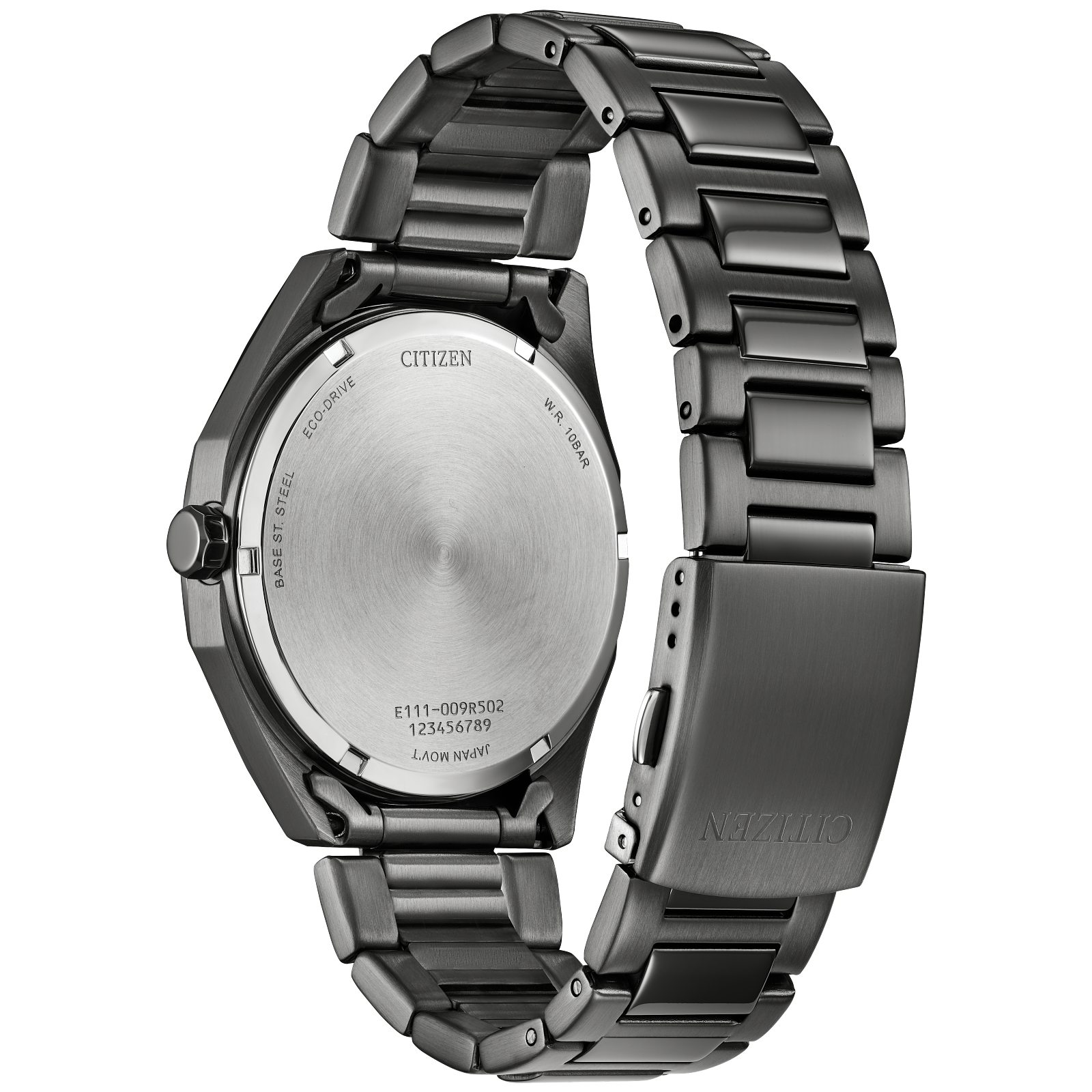 - Sleek 41mm gray-tone stainless steel case with sharp, modern lines