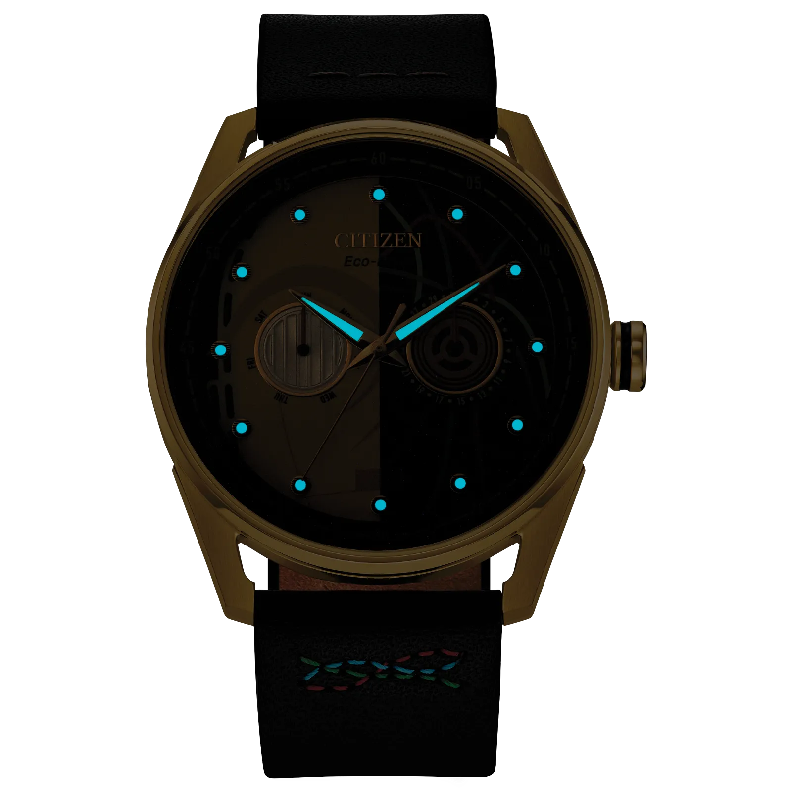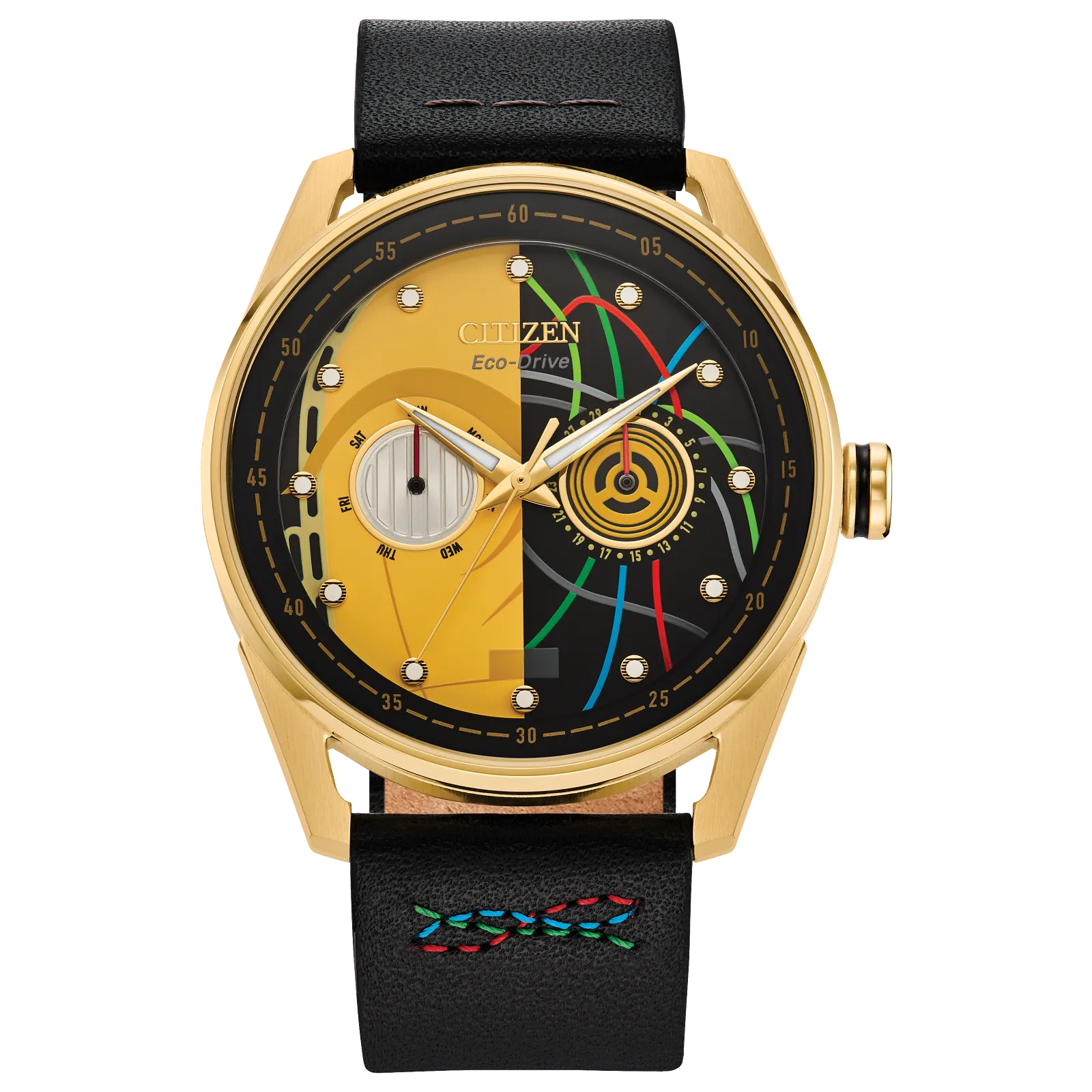 The Citizen Star Wars C-3PO Rewired BU4026-05W is a dazzling homage to one of the most beloved droids in cinematic history. With its gold-tone case, yellow-and-black dial, and intricate details that echo C-3PO’s circuitry, this watch combines Citizen’s Eco-Drive innovation with Star Wars nostalgia for a timepiece that’s both collectible and wearable.