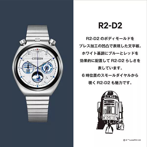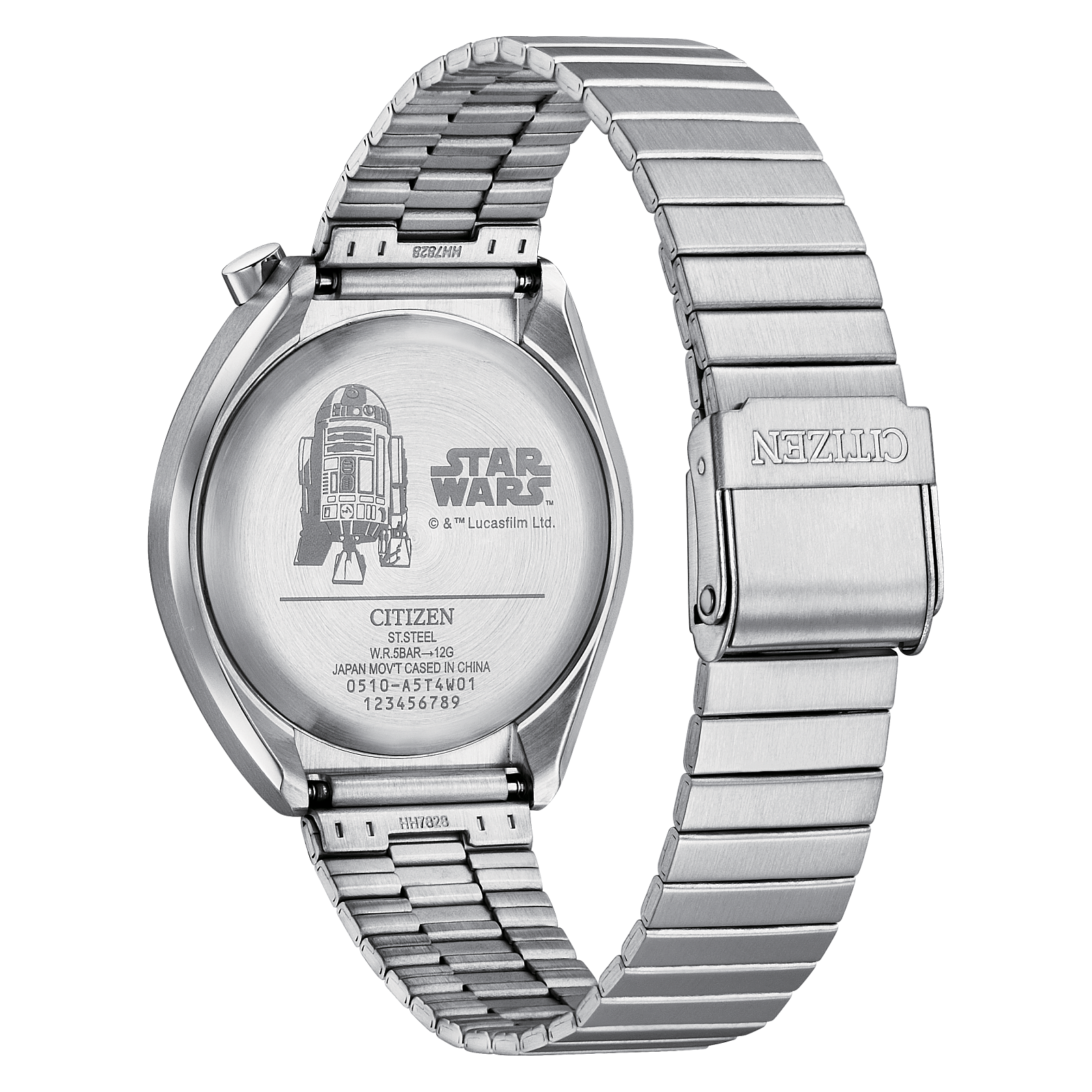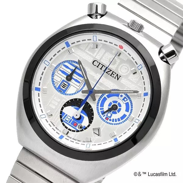 The CITIZEN STAR WARS R2-D2 AN3666-51A is a special edition timepiece from the Star Wars™ | Citizen Tsuno Collection, celebrating the beloved astromech droid R2-D2. Inspired by Citizen’s vintage Tsuno Chrono model from 1972, this watch blends classic chronograph aesthetics with R2-D2’s signature blue, red, and silver design elements.