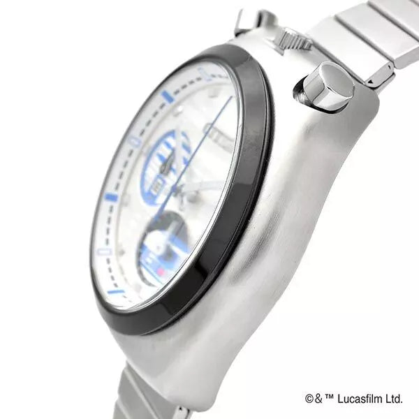 - Design: A stainless steel case and bracelet reflecting R2-D2’s iconic look, featuring raised dial details mimicking his panels.
