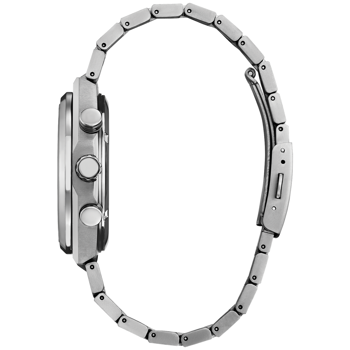- Modern chronograph design with a 42.5mm silver-tone Super Titanium™ case