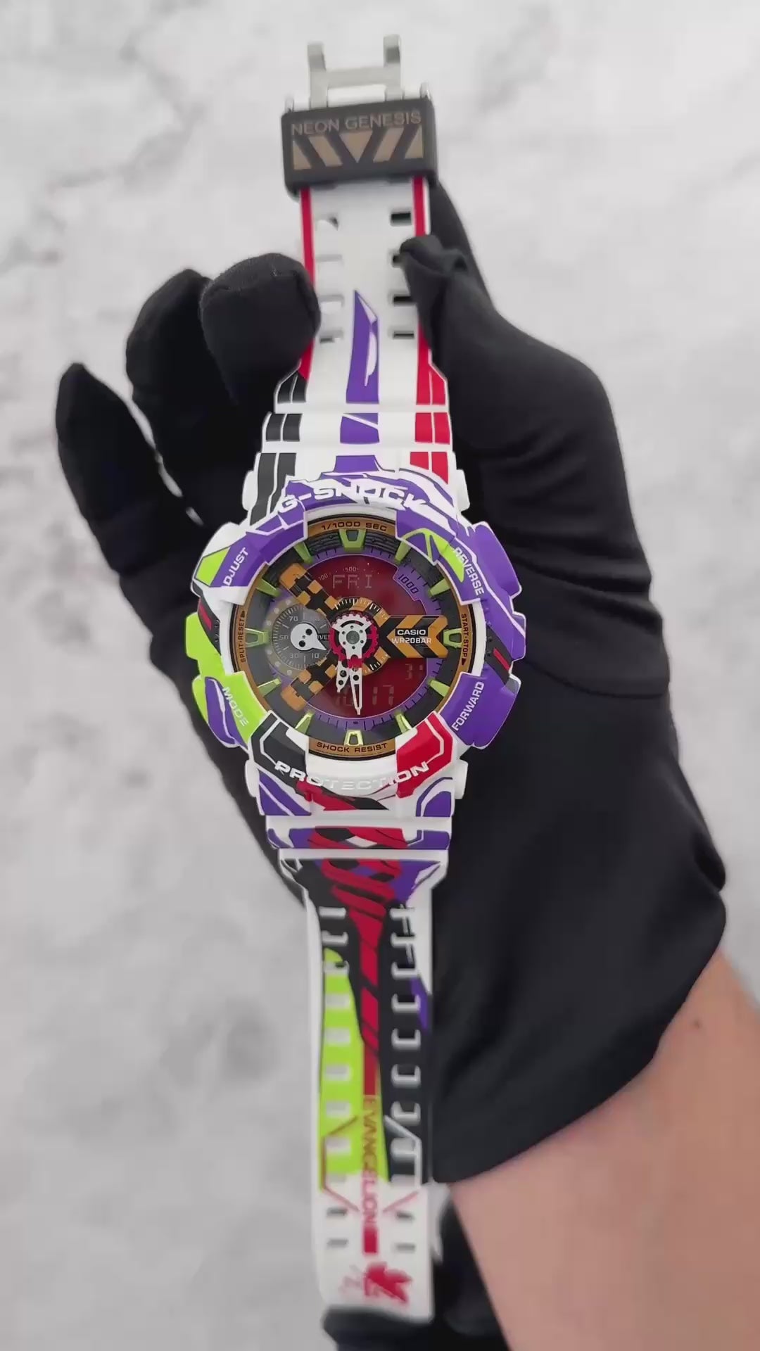The GA-110EVA30-7A is a must-have for EVANGELION fans, combining exclusive anniversary artwork by Ikuto Yamashita with G-SHOCK’s legendary durability. Featuring EVA Unit-01 details, the Spear of Longinus, and special edition packaging, this collaboration is a powerful tribute to one of anime’s most iconic series.