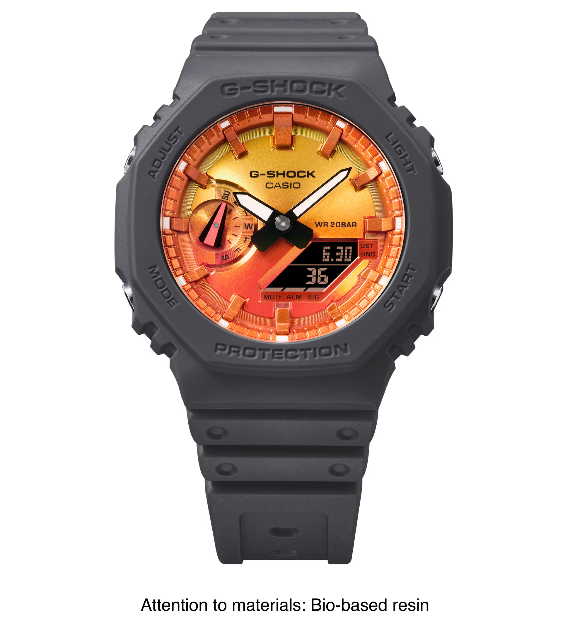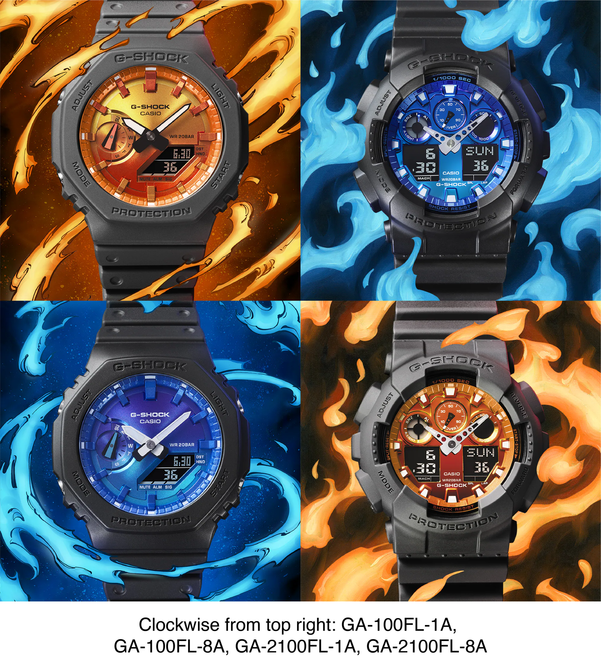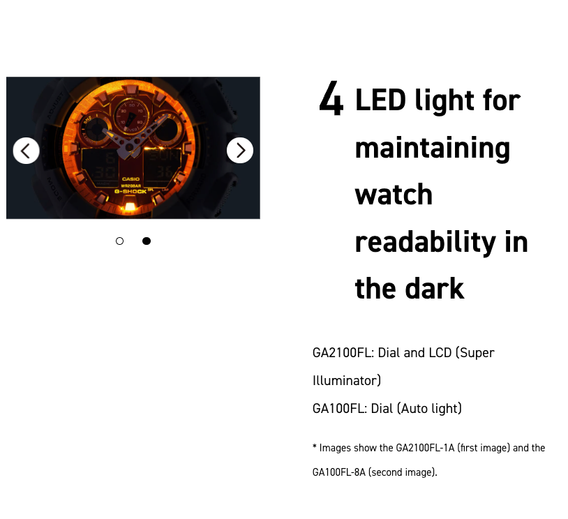 The GA-2100FL-8A is part of the Flame Inside Line, embodying G-SHOCK’s fiery and bold aesthetics. Designed to symbolize the blazing passion of challenges and resilience, this model features a distinctive octagonal case with a striking flame-inspired gradient design.