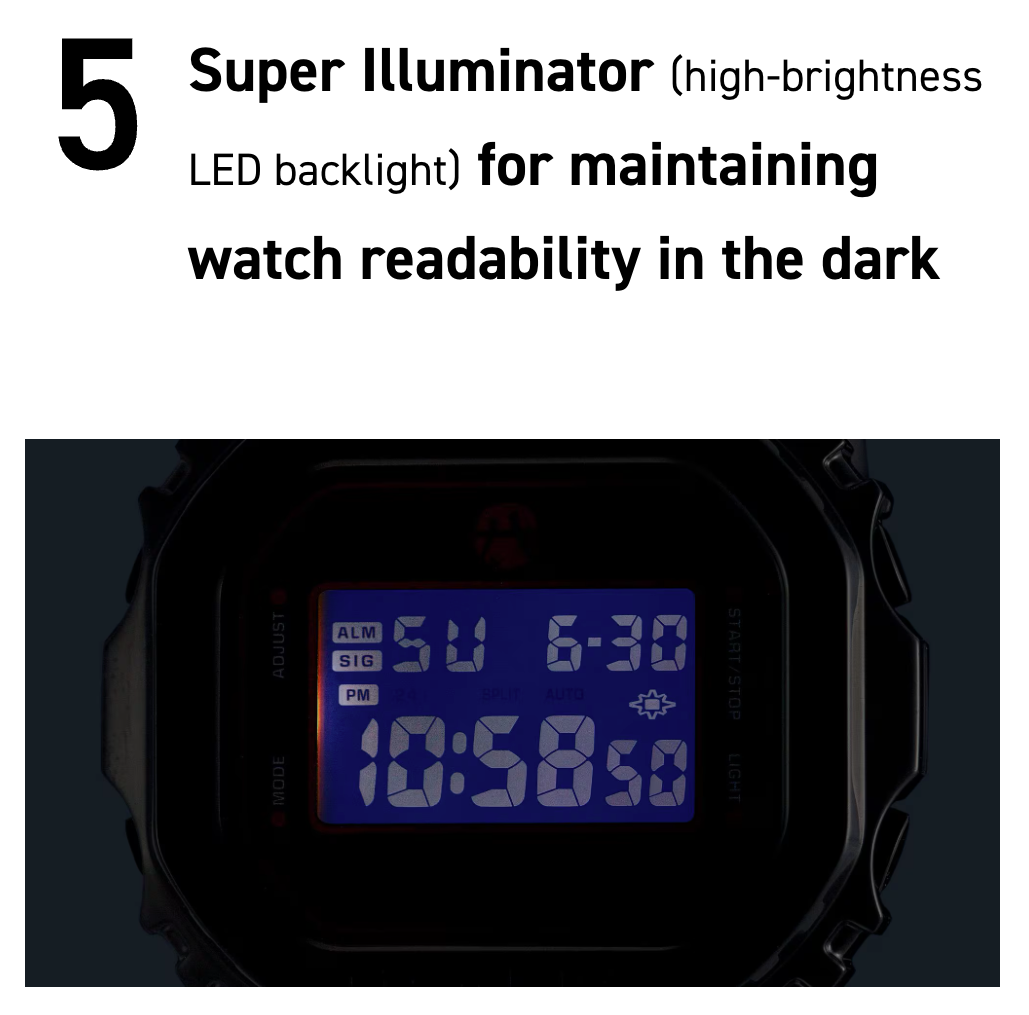 ✔ Distinctive GM5600 design with ion-plated metal bezel