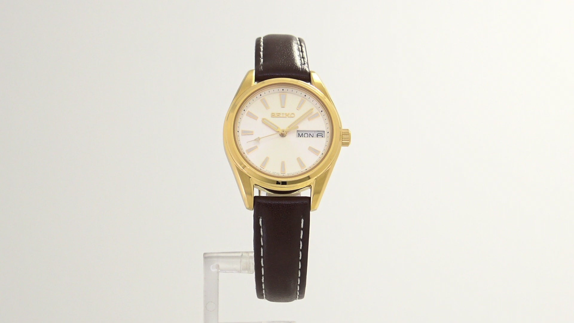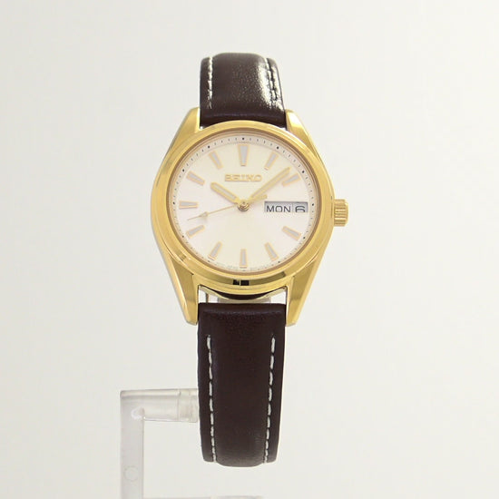 The Seiko Essentials SUR456 from the Essentials Collection redefines everyday elegance with a compact case and timeless appeal. With its champagne sunray dial, gold-tone markers, and ultra-slim profile, this watch blends vintage charm with modern comfort—perfect for smaller wrists or minimalist tastes.