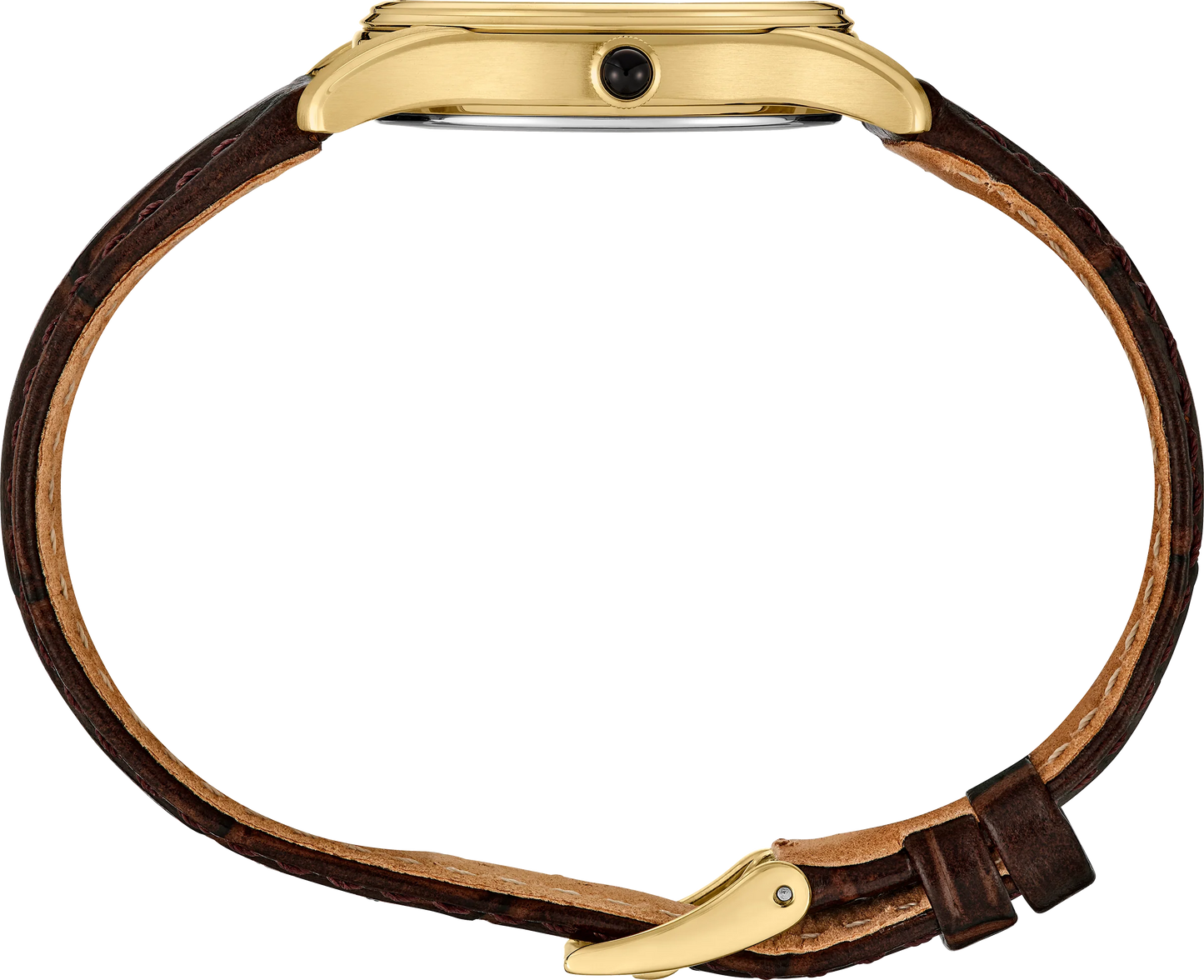 - Strap: Brown leather strap