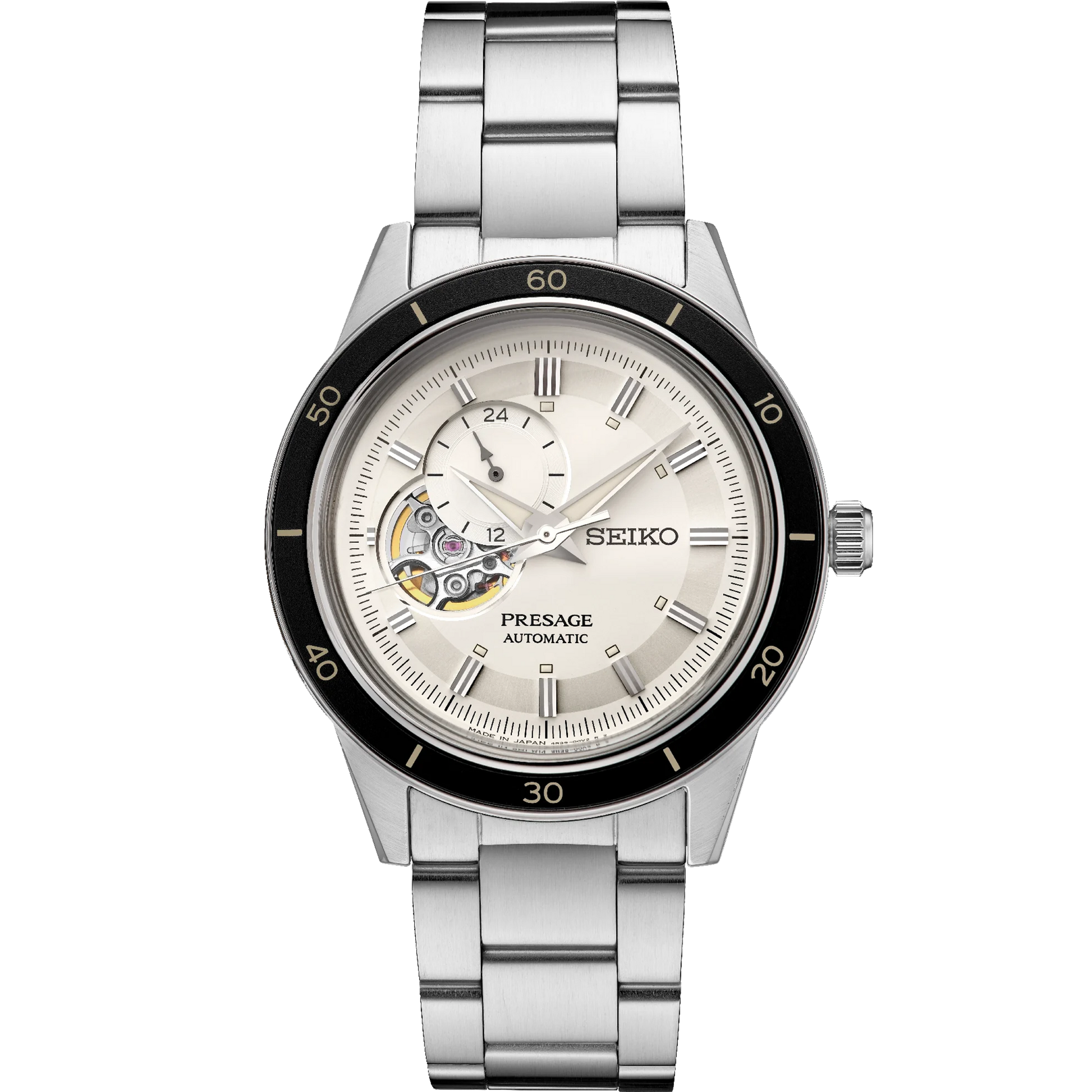 The SEIKO SSA423 from the Presage Style60's Collection blends the finest in Japanese mechanical watchmaking with a retro-inspired design. With an open-aperture ivory dial and a 24-hour subdial, this model celebrates the classic spirit of the 1960s, particularly inspired by the 1964 "Crown Chronograph." Powered by a 24-jewel automatic movement, this watch combines vintage style with modern functionality.