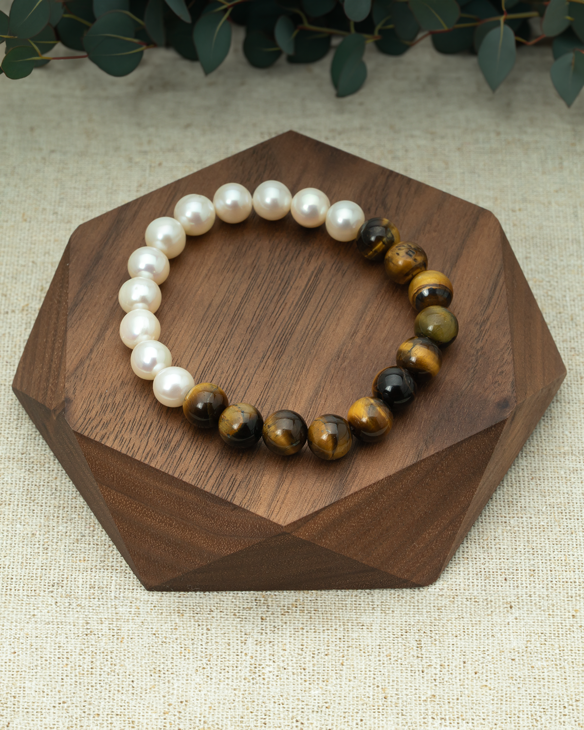 Feature Introduction: Experience elegance and purpose with this bracelet featuring 8mm Tiger Eye and 7.5mm-8mm Freshwater Pearls. Tiger Eye promotes focus and goal achievement, while Pearls symbolize health, wealth, and longevity. Together, they offer both beauty and powerful support. The elastic band ensures a comfortable fit for everyday wear or special occasions.